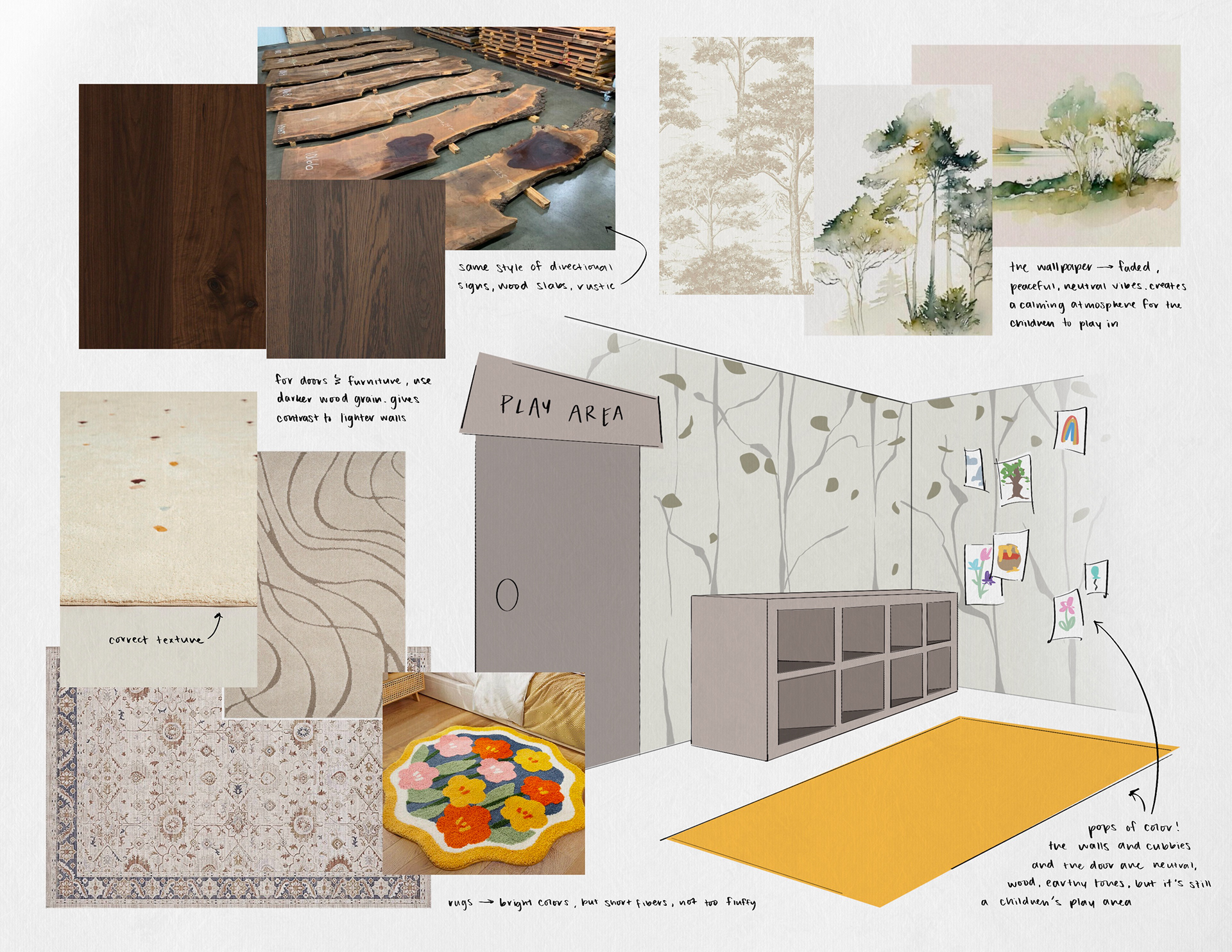 Factors I considered included textures, patterns, textiles, fabrics, colors, typography, space, shapes, lighting types, material finishes, decorative accents, plants, and florals.